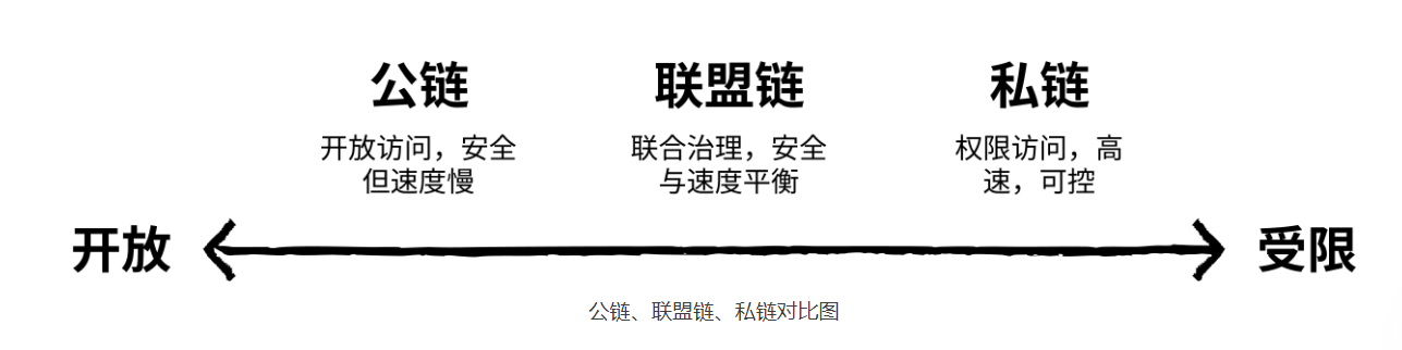 区块链根据访问权限与治理模式,大致可分为三类。按照去中心化程度从高到低排列